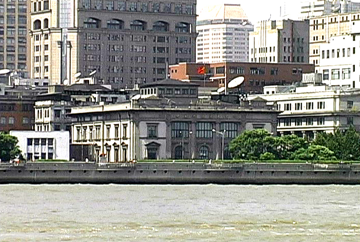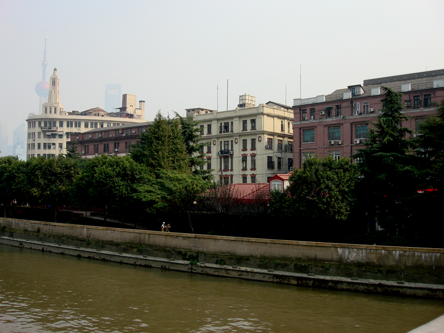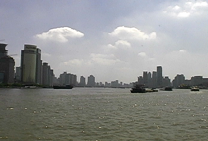 Looking south along the Huangpu River. These are the locations in Empire of the Sun where the Japanese gunboat attacked the British and American ships.
