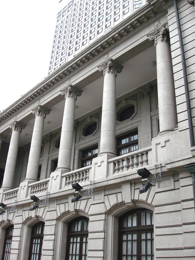 Façade of former Hong Kong and Shanghai Banking Corporation Building. When it was built it was reported that it was the "most beautiful building from the Suez Canal to the Bering Sea"