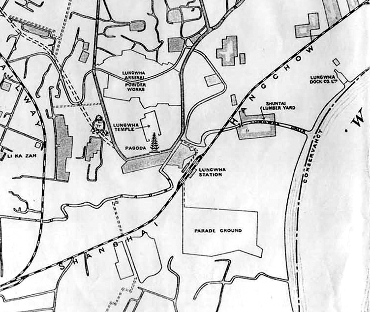 1920s map of the area showing the location of the Pagoda. Note the Lunghua Airport has yet to be constructed.
