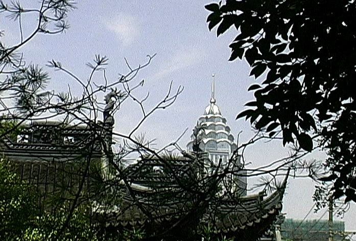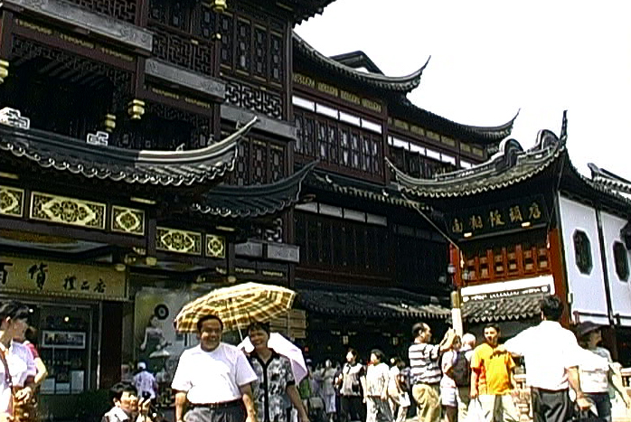 Looking up from the Yuyuan Gardens in the Old City. A city of many contrasts. Still.