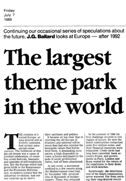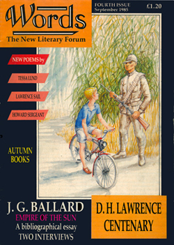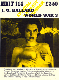 ![]() Empire Of The Sun Granada, London 1985. Paperback. Marked "Special Overseas Edition". ![]() JGB Video Interview ICA Video, The Roland Collection. Undated, but most likely 1985. Interviewer: Matthew Hoffman ![]() Ambit 100 London, Spring 1985 Contains the experimental short story, Answers To A Questionnaire. ![]() Words, The New Literary Forum London, September 1985 Contains the article, J.G. Ballard: A review of his fiction prior to Empire of The Sun, by David Pringle, Interview with J.G. Ballard, by David Pringle, Psychoanalyst of the Electronic Age, a JG Ballard interview by David Pringle, Jim's War, a review of Empire of The Sun by Peter Linnett ![]() Interzone #13 Autumn, 1985 Contains the short story, The Man Who Walked On The Moon. ![]() The Unlimited Dream Company Washington Square Press, New York, November, 1985. Paperback. ![]() Empire of the Sun Washington Square Press, New York, October, 1985. Paperback. ![]() The Day Of Forever Panther Books, London, 1985. Paperback. ![]() Low-Flying Aircraft Panther Books, London, 1985. Paperback. ![]() Concrete Island Panther Books, London, 1985. Paperback. ![]() The Venus Hunters Panther Books, London, 1985. Paperback. ![]() The Crystal World Triad Granada, London, 1985. Paperback. ![]() The Drought Triad Granada, London, 1985. Paperback. ![]() Crash Paladin, London 1985. Paperback. ![]() The Atrocity Exhibition Trtiad Granada, London 1985. Paperback. ![]() Crash Vintage, New York 1985. Paperback. Signed by JGB. ![]() Concrete Island Vintage, New York 1985. Paperback. Signed by JGB. ![]() Vermilion Sands JM Dent, London, 1985. Paperback. ![]() The Voices Of Time Gollancz, London, 1985. Hardcover. First hardcover edition of the Berkley paperback. Collects: The Voices Of Time • The Sound-Sweep • The Overloaded Man • Thirteen To Centarus • The Garden Of Time • The Cage Of Sand • The Watch-Towers • Chronopolis ![]() The Terminal Beach Gollancz, London, 1985. Hardcover. First hardcover edition of the Berkley paperback. Collects: A Question Of Re-Entry • The Drowned Giant • End Game • The Illuminated Man • The Reptile Enclosure • The Delta At Sunset • The Terminal Beach • Deep End • The Volcano Dances • Billennium • The Gioconda Of The Twilight Noon • The Lost Leonardo ![]() The Venus Hunters Gollancz, London, 1986. Hardcover. First hardcover edition of the Berkley paperback. Collects: Now: Zero • The Time-Tombs • Track 12 • Passport To Eternity • Escapement • Time Of Passage • The Venus Hunters • The Killing Ground • One Afternoon At Utah Beach • The 60-Minute Zoom ![]() The Day Of Forever Gollancz, London, 1986. Hardcover. First hardcover edition of the Berkley paperback. Collects: The Day of Forever • Prisoner of the Coral Deep • Tomorrow is a Million Years • The Man on the 99th Floor • The Waiting Grounds • The Lost World of Mr Goddard • The Gentle Assassin • The Sudden Afternoon • The Insane Ones • The Assassination of John Fitzgerald Kennedy Considered As A Downhill Motor Race. ![]() The Day Of Creation Gollancz, London, 1987 The first version of the advanced reading copy, this reproduced from Ballard's uncorrected and unedited typescript. Jim Goddard at Solaris Books says: "This is a copy of Ballard's novel produced as a very early stage book proof from the author's typescript. This appears to be considerably scarcer than the similar typescript proof for Empire of the Sun." ![]() The Day Of Creation Lester Orpen & Dennys, Toronto, 1987. Uncorrected Proof ![]() The Day Of Creation Gollancz, London, 1987. Uncorrected Proof ![]() The Day Of Creation Lester Orpen & Dennys Toronto, 1987. Hardcover. ![]() The Day Of Creation Gollancz, London, 1987. Hardcover. ![]() The Day Of Creation Gollancz, London, 1987. Hardcover. Boxed, signed limited edition. #10/100 ![]() Empire Of The Sun Movie soundtrack, composed by John Williams. Warner Bros. Music, 1987 ![]() The Day Of Creation Farrar, Straus & Giroux NY, 1987. Hardcover. ![]() Interzone #22 Winter, 1987 Contains the interview, JG Ballard by David Pringle ![]() The Terminal Beach Carroll & Graf, New York, 1987. Paperback. Signed by JGB. ![]() Empire Of The Sun Buccanneer, New York, 1987. Hardcover. ![]() ![]() Spiral bound photocopy of Running Wild in manuscript form, showing some corrections, but it's not clear who wrote them. Front cover and first page shown. ![]() Running Wild Hutchinson, London, 1988. Hardcover. ![]() Running Wild Farrar Straus Giroux, NY, 1988. Hardcover. ![]() Ambit 114 London, Autumn 1988 Contains the short story, The Secret History of World War 3, illustrated by Michael Foreman. ![]() ![]() ![]() Research Publications, San Francisco, 1988 reprints of the original 1980 tabloid publications. Contains Zodiac 2000, the John Savage JGB interview, and Stephen Schwatz's New Science Fiction: A Guide. ![]() Memories Of The Space Age Arkham House, Sauk City, 1988. Hardcover. Collects: The Cage of Sand • A Question of Re-Entry • The Dead Astronaut • My Dream of Flying to Wake Island • News from the Sun • Memories of the Space Age • Myths of the Near Future • The Man Who Walked on the Moon. ![]() Interview Magazine Vol XIX, No. 1, New York, January 1988 Contains the short story, Love In A Colder Climate. ![]() Impulse: The Magazine of Time and Space Vol 14, No. 1, Toronto, Spring 1988 Contains the interview, Impulse Talks With JG Ballard ![]() The Day of Creation Grafton, London, 1988. Paperback. ![]() Empire of The Sun Grafton, London, 1988. Paperback. ![]() The Day of Creation Collins, Toronto, 1988. Paperback. ![]() Hello America Carroll & Graf, New York, 1988. Hardcover. ![]() The Crystal World Farrar, Strauss and Giroux, New York, 1988. Paperback. ![]() High Rise Carroll & Graf, NY, 1988. Paperback. ![]() Vermilion Sands Carroll & Graf, New York, 1988. Paperback. ![]() Hello America Carroll & Graf, New York, 1989. Paperback. Signed by JGB. ![]() The Drowned World Carroll & Graf, New York, 