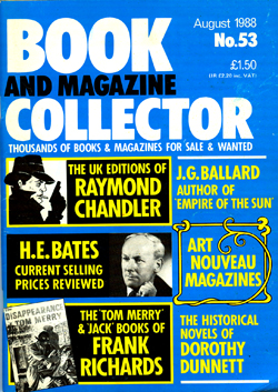 ![]() JG Ballard A Bibliography Prepared and produced by James Goddard, Cypher Press, UK, 1970 The first ever publication about Ballard and his work. It contains two short pieces by JGB and separate bibliographies of Fiction in Magazines and in Books. Ballard's complete output is also listed alphabetically and chronologically. ![]() Luna Monthly Number 23/24, New Jersey, May/June 1971 Contains an overview of JGB by Mark Purcell entitled J.G. Ballard: A Profile ![]() Popular Arts Review Volume 1, Number 1, Glasgow, Summer 1972 Contains an analysis of The Drowned World entitled Landscape As Hero, by Nick Perry and Roy Wilkie, pp. 30-44. ![]() SF Inventing The Future R. Duncan Appleford, Bellhaven House, Toronto 1972 ![]() Riverside Quarterly Volume 5, Number 4, Glasgow, April 1973 Contains an analysis of The Crystal World entitled The Undivided Self: J.G. Ballard's 'The Crystal World', by Nick Perry and Roy Wilkie, pp. 268-277. ![]() Billion Year Spree By Brian Aldiss, Weidenfeld & Nicolson, London, 1973 ![]() J.G. Ballard: The First 20 Years Edited By David Pringle & James Goddard, Brans Head Books, UK, 1976 ![]() The Craft of Science Fiction Edited By Reginald Bretnor, Harper & Row, New York, 1976 ![]() Science Fiction: History Science Vision Robert Scholes & Eric S. Rabkin, Oxford University Press, New York, 1977 ![]() Earth Is The Alien Planet By David Pringle, The Milford Series, Vol 26, Borgo Books, Los Angeles, October 1979 ![]() Voices For The Future Vol. 2 Edited By Thomas Clareson, Bowling Green University Popular Press, Ohio, 1979 Contains the essay, What Are We to Make of J.G. Ballard's Apocalypse, by H. Bruce Franklin ![]() The Entropy Exhibition: Michael Moorcock and the British 'New Wave' in Science Fiction By Colin Greenland, Routledge & Kegan Paul, London, 1983 ![]() J.G. Ballard ReSearch No. 8/9, San Francisco, 1984 ![]() J.G. Ballard: A Primary and Secondary Bibliography By David Pringle, GK Hall, Boston, 1984. Hardcover, issued without dustjacket. ![]() J.G. Ballard By Peter Brigg, Starmont House, Washington, 1985 Uncorrected proof. ![]() J.G. Ballard By Peter Brigg, Starmont House, Washington, September, 1985 ![]() J.G. Ballard By Peter Brigg, Starmont House, Washington, September, 1985 Flawed copy -- four pages are not printed. ![]() Riverside Quarterly Ed. Leland Sapiro, Vol 7, No 4, December 1985 Contains the essay Dry Thoughts in a Dry Season by Joe Milicia ![]() Trillion Year Spree By Brian Aldiss with David Wingrove, Paladin, London, 1986. Softcover. ![]() Trillion Year Spree By Brian Aldiss with David Wingrove, Gollancz, London, 1986. Hardcover. ![]() Dream Makers By Charles Platt, Xanadu, London, 1986 Platt is not a critic... this interesting book is a series of author profiles in which Platt recounts his travels to, and meetings with, various SF writers. Hardcover. ![]() Foundation Edited by David Pringle, London, 1986 Contains the article, The Night Dream and the Glimmer of Light: J.G.Ballard's Hello America, by Peter Brigg. ![]() Book and Magazine Collector London, August 1988 Contains a Mike Ashley essay, JG Ballard, Author of Empire Of The Sun, which traces JGB's career, as well as a Complete UK and US Bibliography showing then-current values for JGB first editions in fine condition. ![]() Cosmic Critiques By Martin Greenberg and Isaac Asimov, Writer's digest Books, Ohio 1990 Contains an examination of Billenium. Paperback. ![]() Out of the Night and into the Dream by Gregory Stephenson, Greenwood Press, 1991. Hardcover, issued without dustjacket. ![]() Extrapolation Volume 35, Number 1, Kent State University Press, Spring, 1994 Contains the article, JG Ballard: Time Out Of Mind, by Peter Brigg. ![]() "The Angle Between Two Walls" By Roger Luckhurst, Farrar, Straus & Giroux, NY, 1997. Hardcover. ![]() J.G. Ballard By Michel Delville, Northcote House, UK, 1998. Hardcover. ![]() Crash By Ian Sinclair, BFI Publications, London, 1999. Paperback. ![]() J.G. Ballard By Andrzej Gasiorek, Manchester University Press, Manchester, UK, 2005. Hardcover, issued without dust jacket. ![]() J.G. Ballard By Andrzej Gasiorek, Manchester University Press, Manchester, UK, 2005. Paperback. ![]() Hard Mag Number 1, London, UK, July 2005. Contains an essay by Editor Simon Ford, 'Perverse Technology' - J.G. Ballard's 'Crashed Cars' Exhibition of 1970, and a Simon Ford & Dan Mitchell interview with JGB. ![]() Grave New World By Dominika Oramus, University of Warsaw, Warsaw, 2007. Inscribed. Paperback. Limited to 150 copies. ![]() JG Ballard: hautes altitudes Ed. Jérôme Schmidt and Emile Notéris, ere Publications, France, November 2008. Paperback. ![]() JG Ballard Contemporary Critical Perspectives Ed. Jeanette Baxter, Continuum International Publishing, London 2008. Hardcover, issued without dust jacket. ![]() JG Ballard Contemporary Critical Perspectives Ed. Jeanette Baxter, Continuum International Publishing, London 2008. Paperback. ![]() J. G. Ballard's Surrealist Imagination Jeanette Baxter, Ashgate Publishing, Farnham 2009. Hardcover. ![]() Book and Magazine Collector #309 Warners Group Publications, Leeds, July 2009. pp 18-31 Contains the article JG Ballard by Mike Holliday. ![]() Firsts: Book Collector's Magazine Vol 230 No 8 Firsts Magazine, Tucson, October 2010. Contains the article The Worls According to JG Ballard (pp 16-27) and J.G. Ballard: A Checklist of His First Editions (pp28-31) by Daniel Perry. ![]() The Psychological Fictions of J.G. Ballard Samuel Francis, Continuum Publishing, London, November, 2011. Hardcover, issued without dust jacket. ![]() J.G. Ballard Visions and Revisions Edited by Jeannette Baxter and Rowland Wymer, Palgrave MacMillan, London 2012. Hardcover. ![]() Terminal Atrocity Zone Edited by Candice Black, Sun Vision Press 2012. Softcover. |