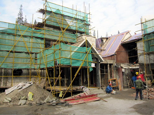 Renovations to JG Ballard's Amherst Ave Home. Updates from Shanghai: scroll down thru time... October 27, 2009 The SH508 people have sold the house and moved to a new location around the corner. The house is currently under renovation of some kind. Will keep my eye on it, but, in Shanghai, despite the govenment 'protection' of old houses, everytime one of the villas changes hands there's a 50 percent chance it goes, at least in it's original form. Also, the Longhua runway and the original guard booth we saw by the railway are both dug up and going as part of the expo site work. Andy Best November 27, 2009 I just returned from a trip through China. Made it to Beijing, Shanghai and Hong Kong. I stopped by JG Ballard's boyhood home in Shanghai. It's currently undergoing a major renovation. The construction workers were aware of the historical significance of the home. Hopefully it will be finished with respect to its origins. Dan Butterfield Editor, http://iphonasia.com ![]() ![]() These photos were taken on November 17, 2009. That's Dan Butterfield. January 17, 2010 Concerning the house, yeah, I went yesterday and it's much worse. They ended up stripping it to the beams, it looked like a barn. Now it's re-made out of concrete. Only the old front door down the lane is untouched, but not for long. Andy Best August 29, 2010 Hi Rick, Haven't got much of a story to tell -- to visit the Ballard home, I came out of Hongqiao Road metro Station, and headed northeast along Huahai Road for about ten minutes, before turning left into Pan Yu (Columbia Rd before the war). The house is clearly visible behind a wall and electric fence. At first glance, it looks pretty much like the original house, but almost nothing original remains of the old place. The renovations seemed to be pretty much complete, but I was not able to tell what the building is intended to be now. It might be another restaurant, or it could equally be a private dwelling. I didn't have time to try and ask around to find out, so I headed around the corner into what used to be Amhurst Avenue (now Xinhua Rd). As I saw the old driveway to JG Ballard's home, I thought of the old beggar lying dead in the snow on the corner, and the wheels of the car going over his foot as it turned out into Amhurst. There is a little cabin with a security guard at the entrance of the drive, but I just walked by and waved at him -- he nodded back and didn't seem to mind me being there. At the end of the drive I looked at the original site of the Ballard front door. It is completely sealed off by a new brick wall, and unless you knew, you wouldn't imagine this was once the front of the house. The window above the old door remains. Directly opposite the old front door is another pre-war house, somewhat untidy and overgrown. In a pile of earth next to the new brick wall, I picked up a shard of pottery with some blue and white decoration. It looked like part of a tea cup. Could Mrs Ballard have sipped morning tea from this cup before the Japanese invasion? I also had a look around the old Longhua Airfield. To get there, just come out of Longcao Road metro station and walk east along Longhua Road for about 5 minutes, past some shops, then turn right into Longhua Road West. Go over a canal, and then behind a newly built brick and cement wall on the right, you will see the old guardhouse where the Hangzhou - Shanghai railway line used to cross the road until a couple of years ago. Only the roof is visible behind the wall, but you can see more of it just around the corner. It is now a fruit shop, and the owner is not very keen on allowing people to come in and take photos. Right across the road is a large building that looks something like a cinema, or large store. This is the old terminal building of Longhua airport, that has now been converted into a hotel and public baths. If you look at the back of the building, you can see the old control tower. Walk further down towards the Huangpu river, and on the right you wil see the old runway stretching into the distance -- now covered by car parks and buildings. Across the road to the left where the runway once ended, you can still see some old planes, streaked with dirt and grime, falling apart trapped among the apartment blocks and rubble. There are quite a few buildings scattered around the area that must be contemporary with the airport in its heyday -- maybe even some from the pre-war airbase, but it's hard to tell. In China, comparatively new buildings soon start to look old. Nick Darsley Nick was kind enough to also send these photos: ![]() ![]() The old Ballard home is now completely renovated, picking up from the changes made when it was turned into a restaurant in 2007. Only the roofline now remains. ![]() The lane to the Ballard house original front door, off Amherst Avenue ![]() The wall beside the old front door of the Ballard home... all bricked over ![]() Lunghua airport terminal... now housing ![]() Lunghua airstrip... now a parking lot ![]() Lunghua Airport control tower... now residences ![]() Lunghua Pagoda (rebuilt in the 1990s) ![]() The roof of the old Hangzhou - Shanghai railway guardhouse can be seen behind the new wall. May 9, 2011 Hi Rick, Glad you liked the photos. Unfortunately, we weren't able to tour the rest of the house, as it was booked out for a wedding. Chinese believe that some dates are better than others for weddings, and apparently, yesterday was a very good day, as a lot of weddings were taking place. I might go back for afternoon tea sometime, and see if I can get a tour of the rest of the premises. Looking at JG's drawing, it looks like the dining room, drawing room, and enclosed veranda have been combined into the main dining room of the restaurant, and this is where we ate. The kitchen for the restaurant appears to be the original kitchen, and expanded into the servants quarters. My parents are in town visiting, so I brought my dad along with my friend and I. My dad can't recall